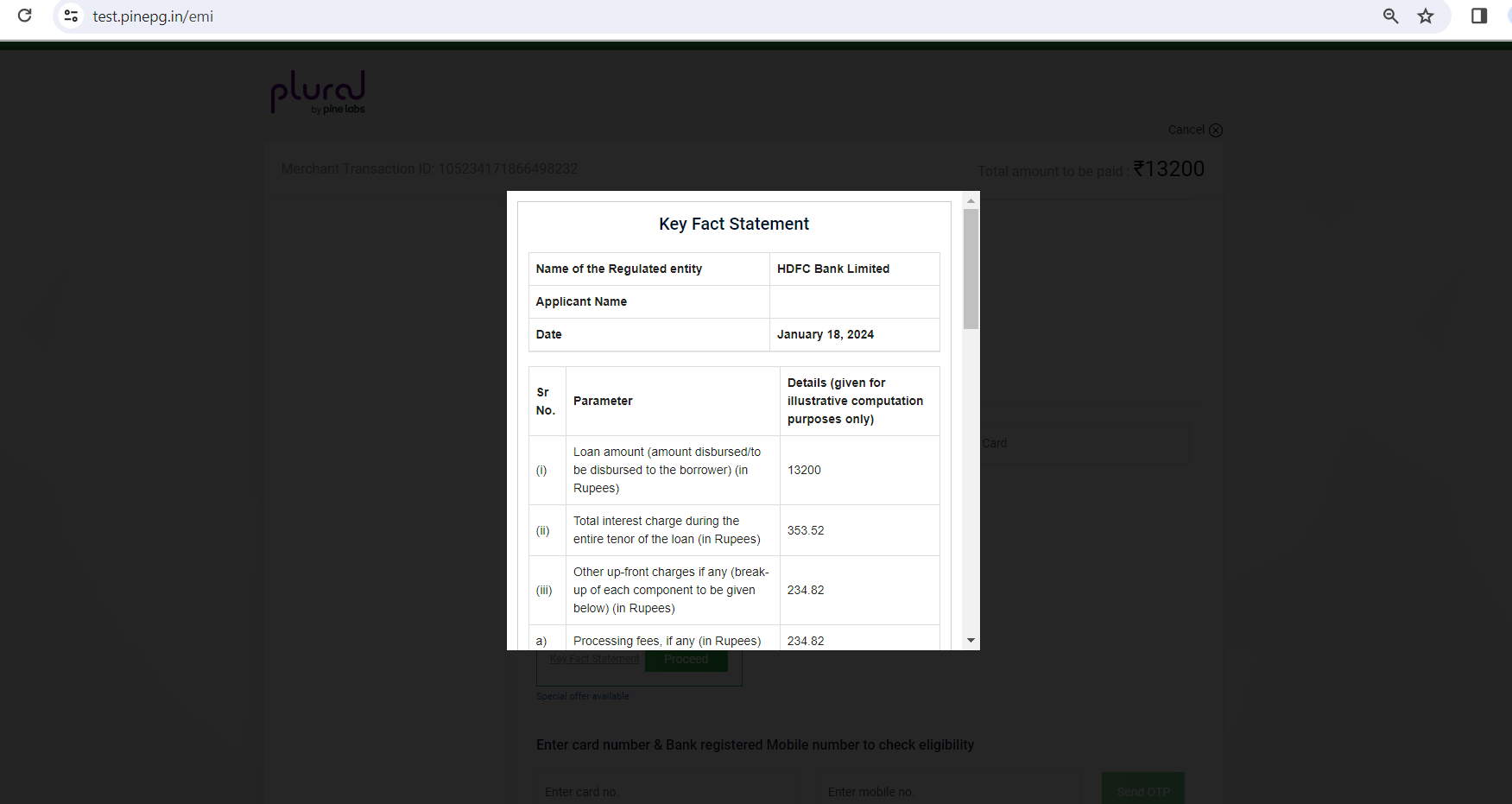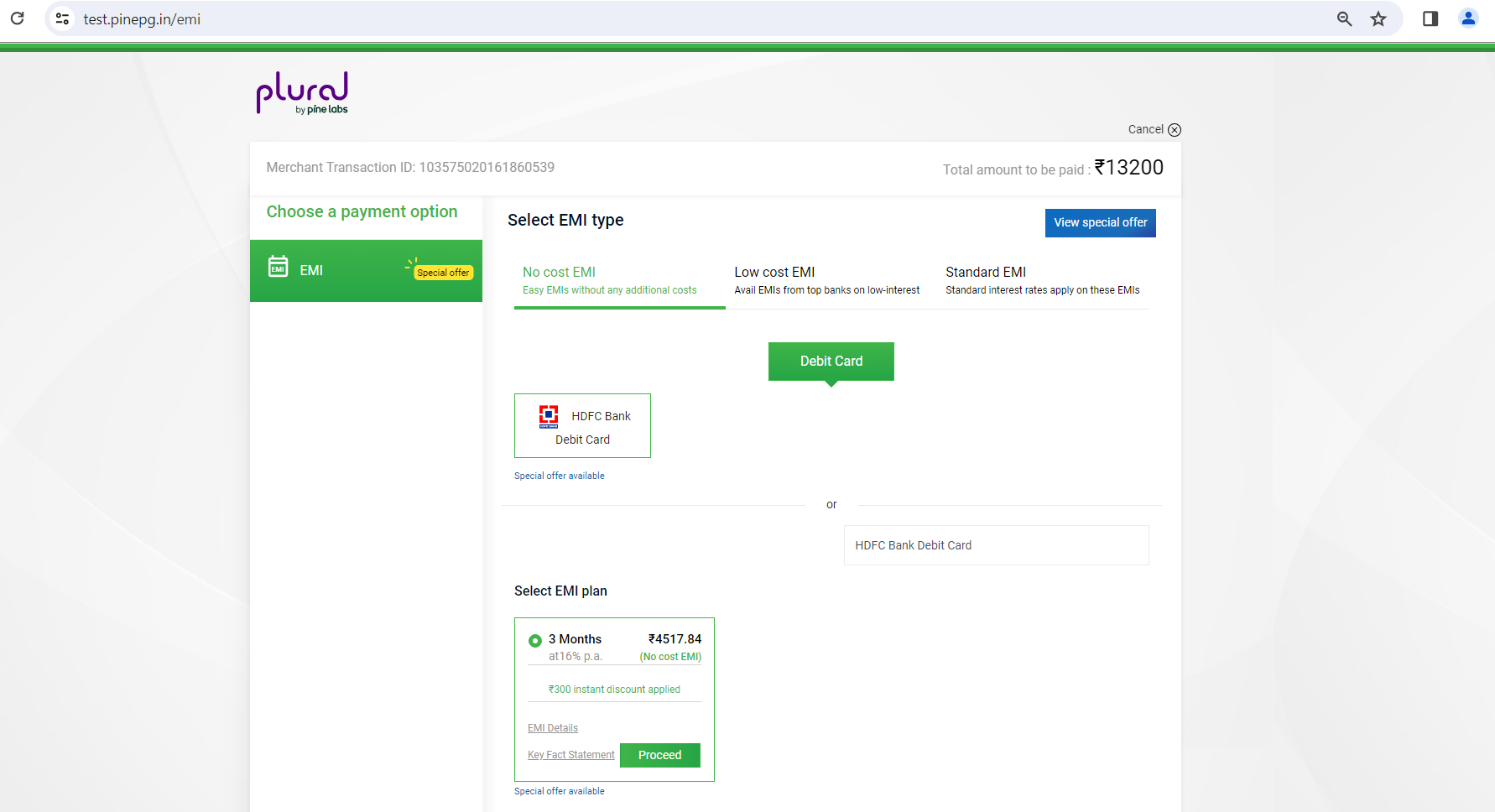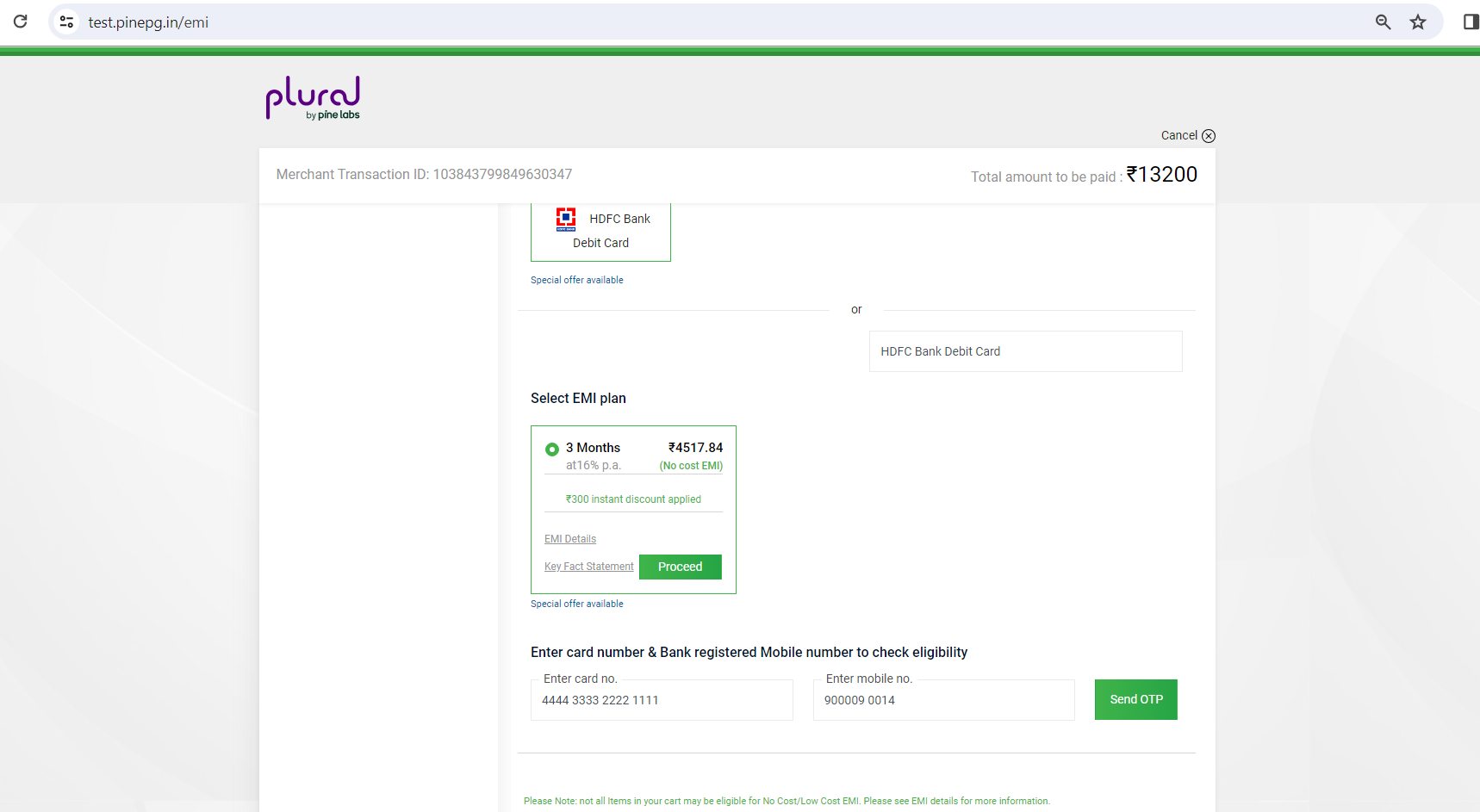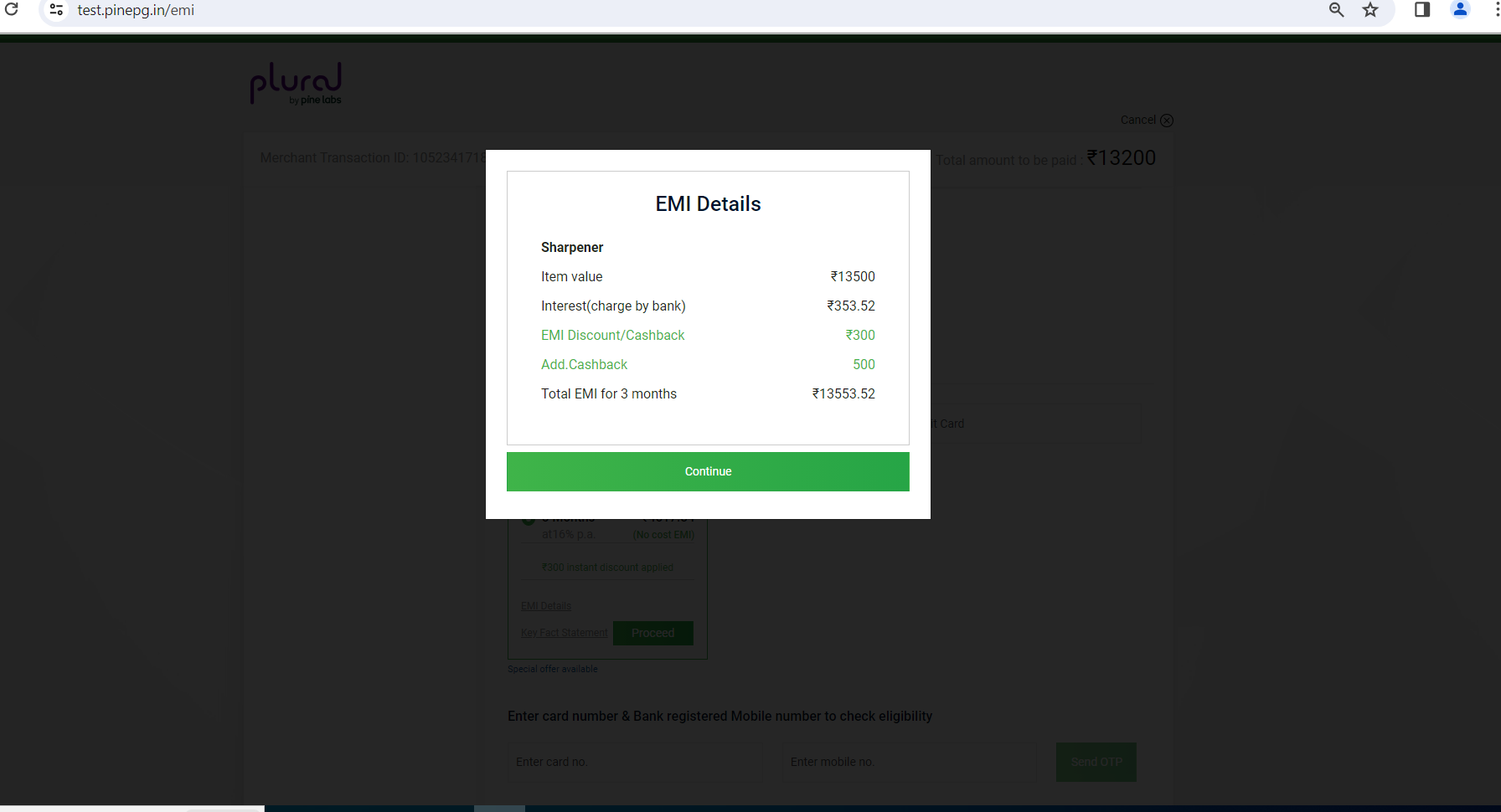 - Ensure the product SKUs are configured at Pinelab’s end for Brand EMIs before utilizing in the APIs.